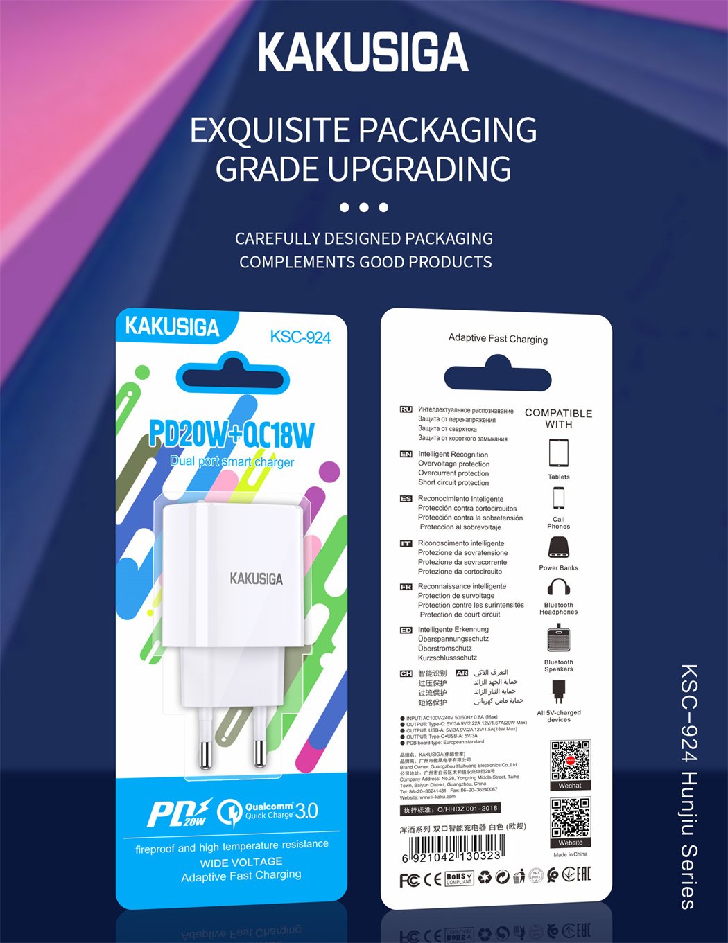KSC-924 HUNJIU series PD20W+QC3.0 dual-port smart charger EU